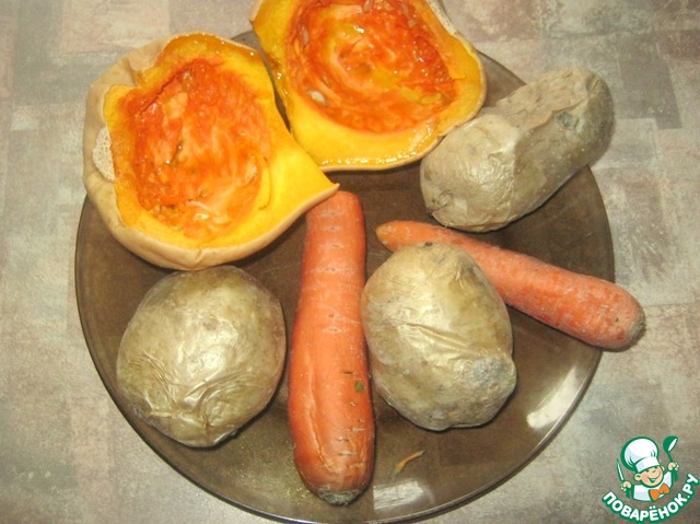 Запечь тыкву, морковь и картофель в микроволновке-так овощи приобретут более мягкий и нежный вкус и нежную структуру. Время зависит от мощности вашей микроволновки