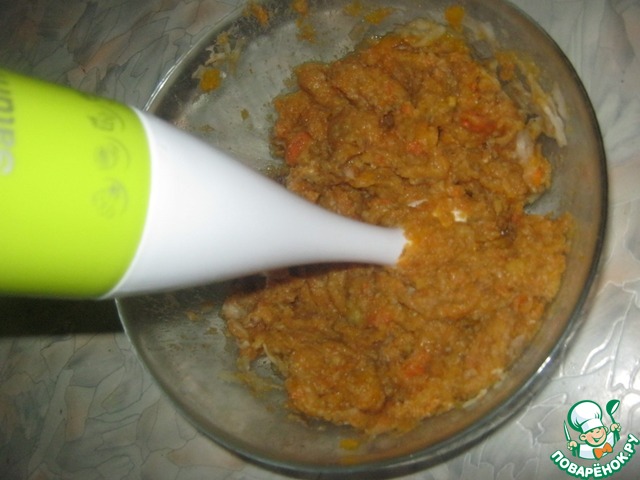 Очистить тушеные овощи, смешать с прижаренными, перемолоть блендером