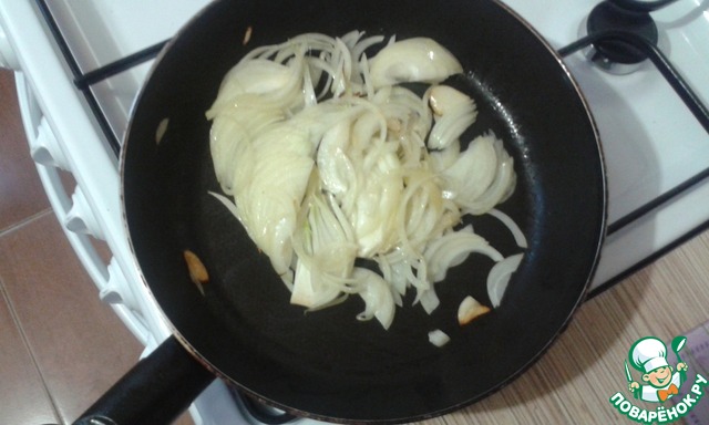 Добавляем лук и пассируем до золотистого цвета.