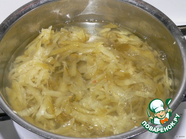 Огурцы я тоже тру на крупной терке (мы любим именно так), складываю в небольшую кастрюльку, добавляю рассол от огурцов так, чтобы покрыть огурцы, ставлю тушиться на маленьком огне под крышкой.