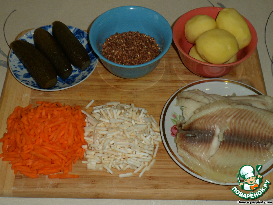 | Захотелось чего-нибудь новенького, необычного. Порылась в своем архиве и нашла этот рецептик. Супчик получился очень вкусный, наваристый. Непривычное сочетание рыбы, гречи и соленых огурчиков оказалось очень пикантным. |