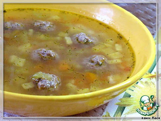 Скатать маленькие шарики. Так как суп предназначался и для ребенка, фрикадельки катала мелкие, чтобы в ложку и в рот вмещались.