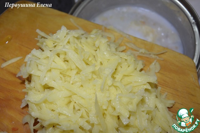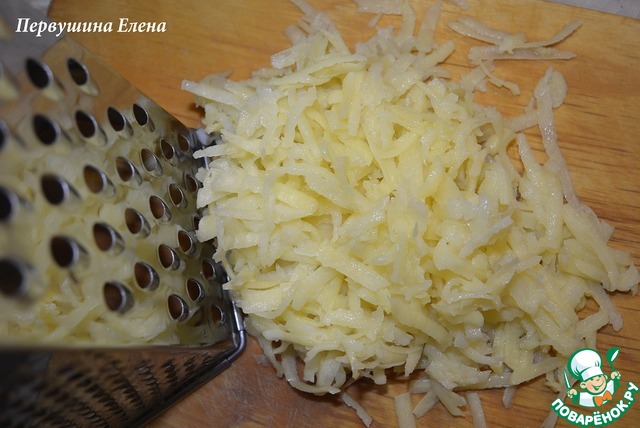 Картофель натереть на крупной терке и отжать сок.
