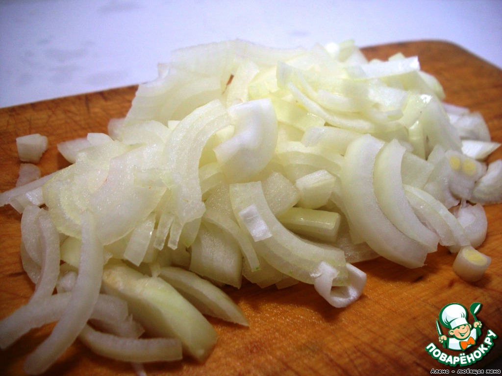 Лук тоже можно нарезать на свой вкус, я люблю покрупнее.
