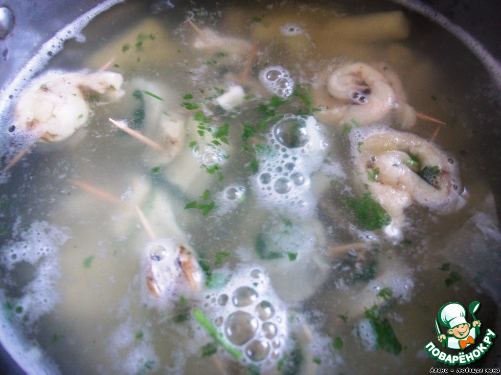 Когда картошка поварится минут десять, добавить рыбные спиральки и варить еще минут 10.