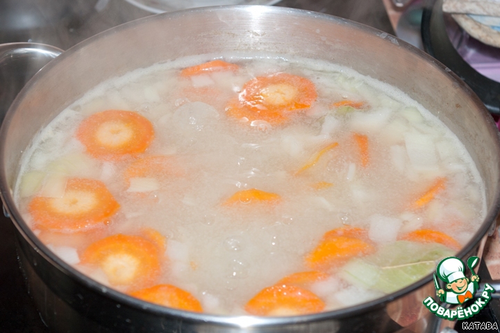 Периодически снимайте пену. Нам она ни к чему. Не давайте бульону сильно кипеть, чтобы не мутнел.