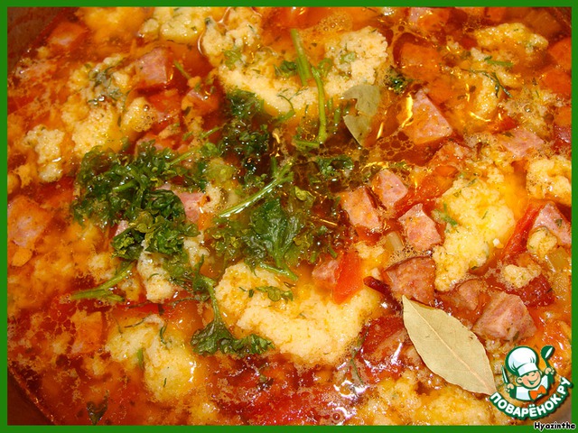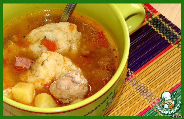 Убавляем огонь до минимума (это важно!! суп должен лишь чуть побулькивать, тогда клецки не развалятся. Иначе вы получите манную кашу :( )