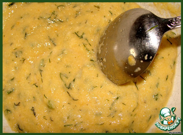 в манную крупу добавить яйцо, укроп, щепотку соли и молоко -
