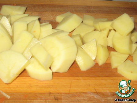 В это время нарезал картофель и отправил в бульон.