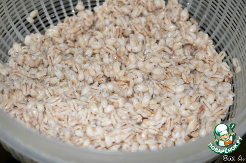 Добавляем отваренную перловку... (если варим суп без картошки, то начинаем с этого шага)