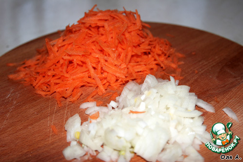 добавляем тертую на крупной терке морковь. Обжариваем до мягкости...