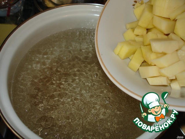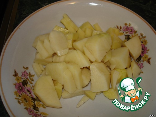 Картофель порезать кубиками.