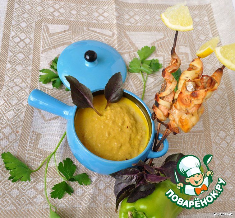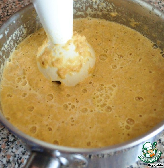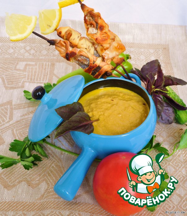 Измельчить все блендером, если будет густой суп, то добавить еще бульона, поставить на огонь, добавить рыбную масалу или карри по вкусу и в самом конце сливки, довести до кипения и выключить. Подавать с шашлычками.