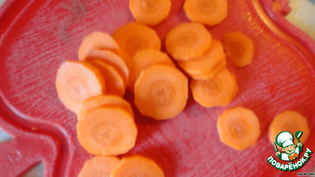 Морковку режем красивыми колечками. Бросаем в бульон.