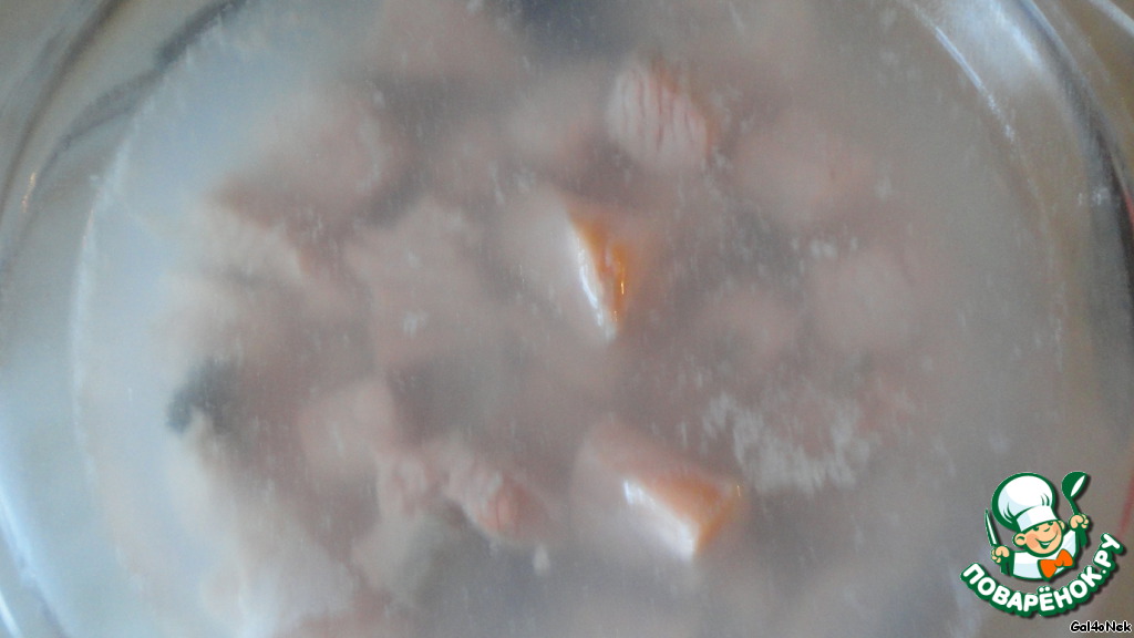 С рыбным филе проделываем тот же "финт ушами" с заливанием кипятком.