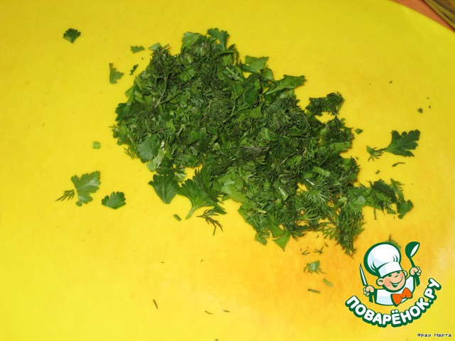 Зелень мелко режем.