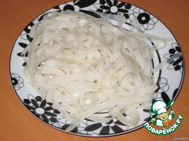 Затем отваренную рисовую лапшу.