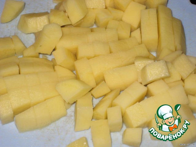 Чистим картофель, моем и режем кубиками.