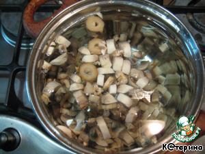Налить в кастрюлю воды, засыпать в неё грибы, поставить варить на 15-20 минут.