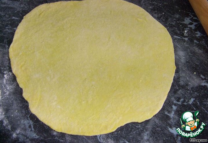 Замесить тесто. При необходимости добавить ещё муки или разбавить водой. Месить до состояния лепёшки, которая легко бы отходила от рук.