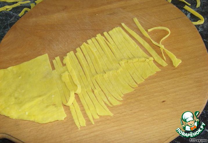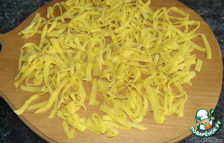 Лапши получится много, всю не добавлять. Я собираю оставшуюся, немного подсушиваю на столе (пару дней) и убираю до следующей готовки))