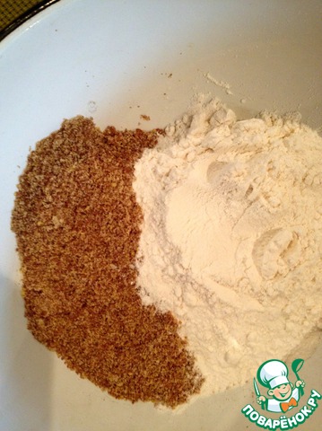 Смешала льняную муку с пшеничной, добавила соль, сахар, тщательно перемешала и понемногу по одной ложке вливала холодную водичку. Количество воды корректировать по ходу. Замесить крутое тугое тесто.