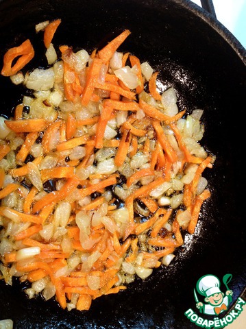 Делаю зажарку из лука и нарезанной соломкой моркови.