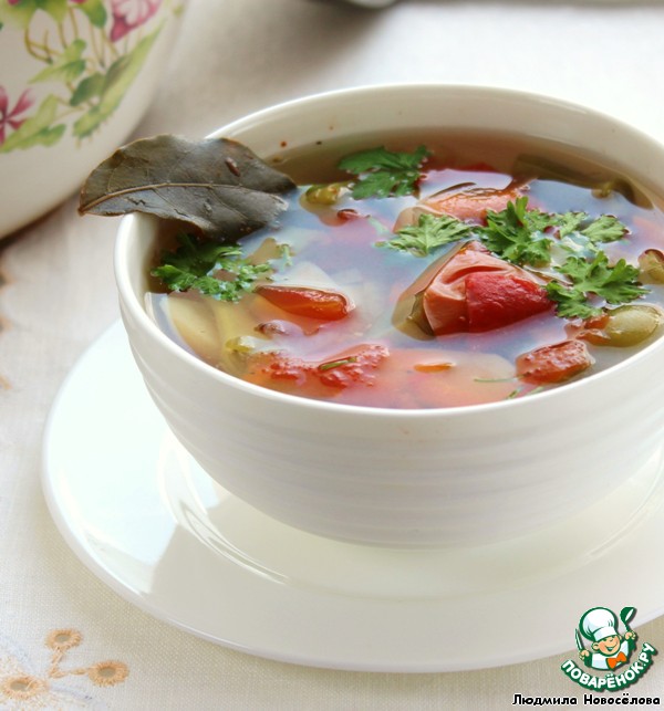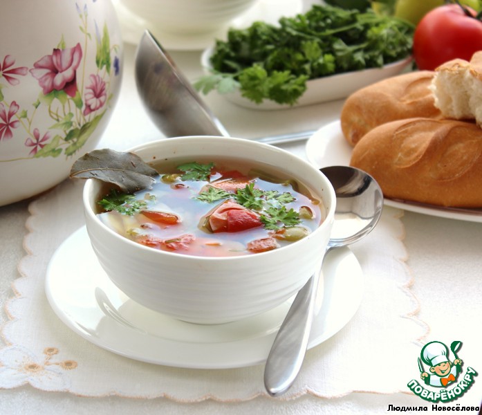 | Как-то отдыхали мы в Абхазии, в курортном городке Гудаута. И хозяйка, у которой снимали комнату, угостила нас супом. На первый взгляд он показался очень скромный, но это до первой ложки... Приготовлен суп из свежих овощей, а вот ощущение такое, будто сварен на насыщенном мясном бульоне. Готовится молниеносно, как в сказке, сказал: "Горшочек варись" - и суп готов. Не надо ничего жарить, пассеровать, только овощи помыл, почистил, поварил, и суп готов. |