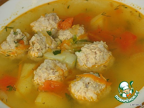 По желанию заправить приправой из трав и специй. Суп с фрикадельками готов!