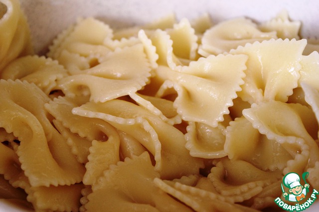 Макароны отварить до готовности в подсоленной воде, откинуть на дуршлаг.