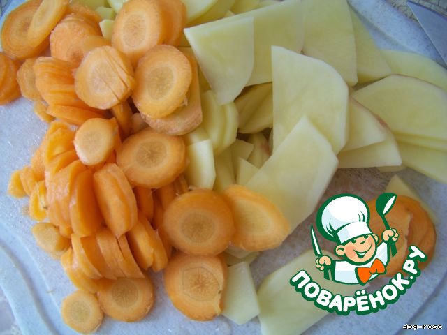 Режем все овощи примерно так, как у меня показано, тонкими ломтиками.
