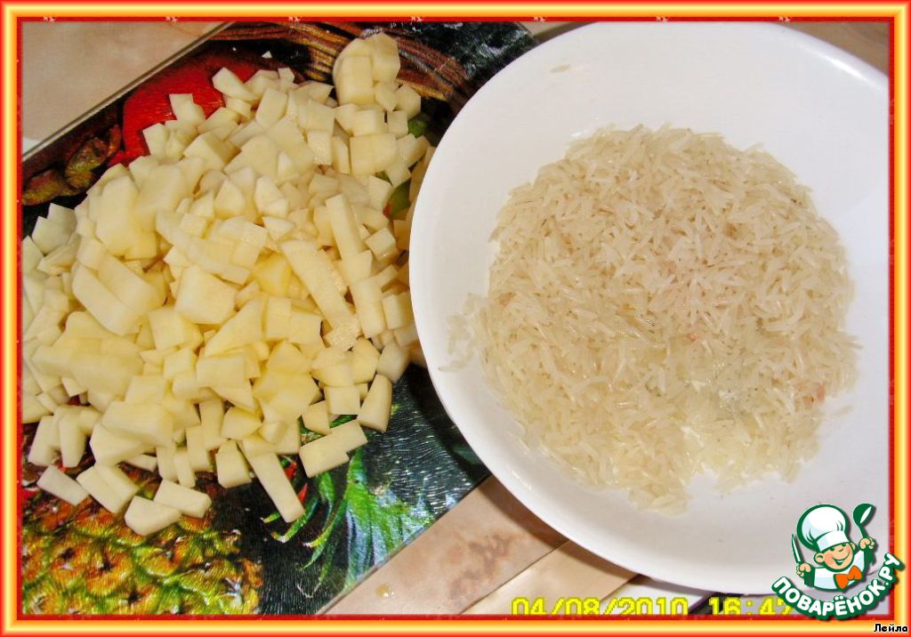 [quote]Слова автора. P.S. Я варю это кол-во продуктов на 3-3,5л бульона, но у меня муж любит густой суп. Поэтому кол-во картофеля и риса нужно регулировать по своему вкусу. Этот суп можно готовить и без куриного бульона, в этом случае добавить 2 куриных кубика.[/quote]