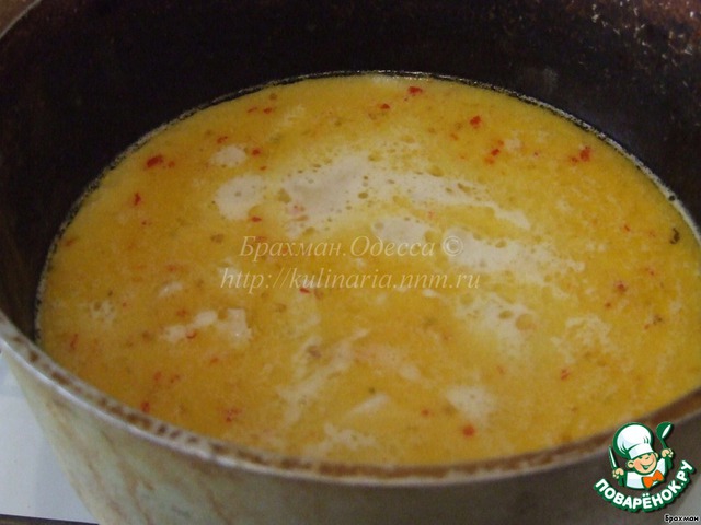 Вливаем креветочно-мясной бульон, доводим до кипения и даем подружиться пару минут.