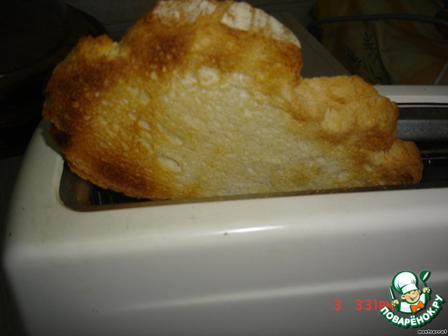 Ломти хлеба подсушиваем. При желании можно подсушенный хлеб натереть слегка чесноком.