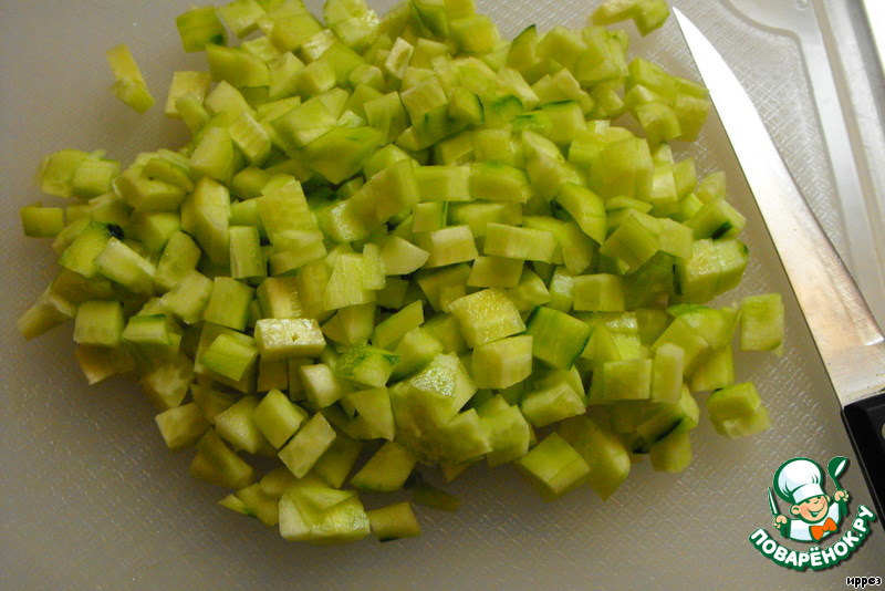 Огурцы очистить от кожицы и семян, нарезать произвольно.