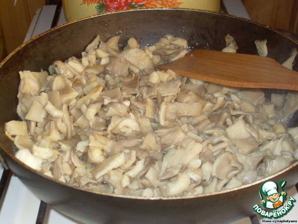 Тем временем грибы (у меня вешенки) нарезать довольно крупно.