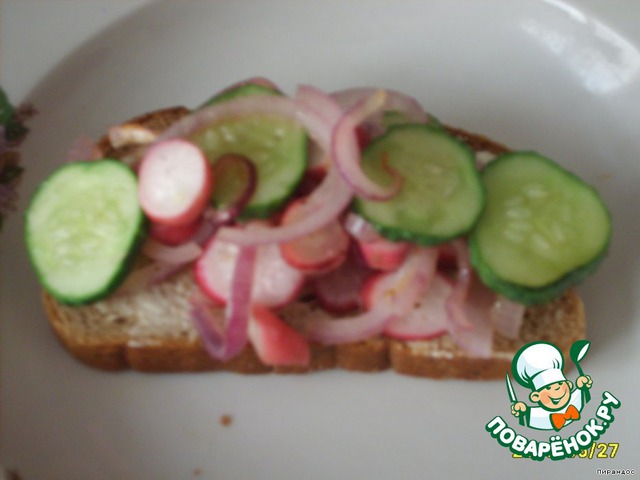А это бутер с редиской жареной и с таким же жареным огурцом, который обещала приготовить сегодня. Обещала - получите!