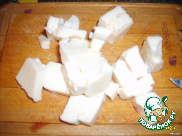 Добавляем его туда же. Помешиваем суп, пока не растворится сыр. Выдавливаем зубчик чеснока в суп.