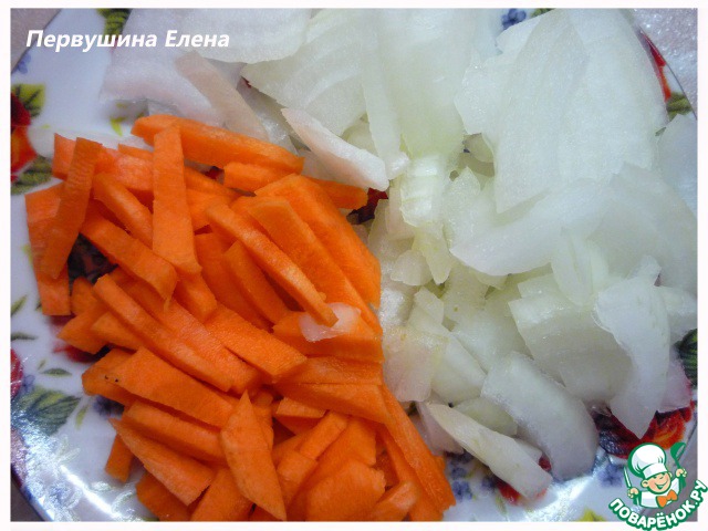 Нарезаем лук кубиками, а морковку трем на крупной терке.