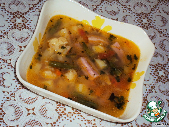 В этом супе я заменила обычную белокочанную капусту на цветную и обычную фасоль - на зелeную стручковую.