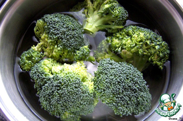 Капусту брокколи разобрать на соцветия и отварить до готовности (примерно 20 минут).