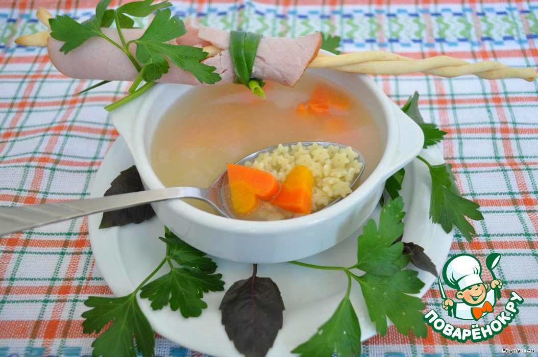 В процеженный бульон кладем фигурную морковь, через несколько минут макароны или орзо.