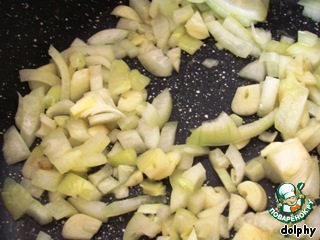 В кастрюле разогрейте масло. Добавьте лук и чеснок и готовьте 3 - 5 минут до мягкости лука.