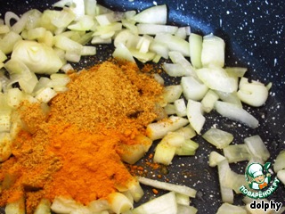 Добавьте карри и куркуму. Готовьте, помешивая, еще секунд 30, пока не почувствуете аромат специй.