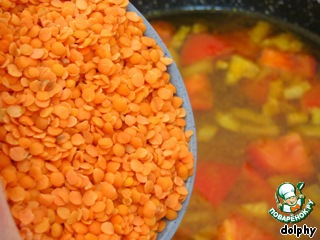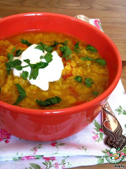 | Рецепт этого блюда был размещeн на сайте в 2009 году пользователем Ирина Семенова под названием "Суп-пюре из красной чечевицы" и иллюстрирован мной в рамках акции "Раскраски". Любителям чечевицы и карри! |