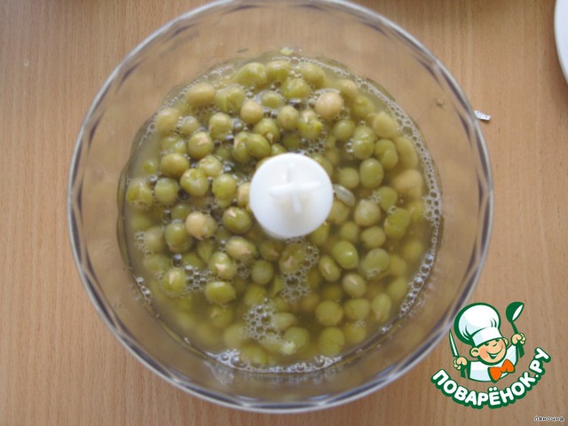 В блендер кладем горошек из банки, вместе с жидкостью.