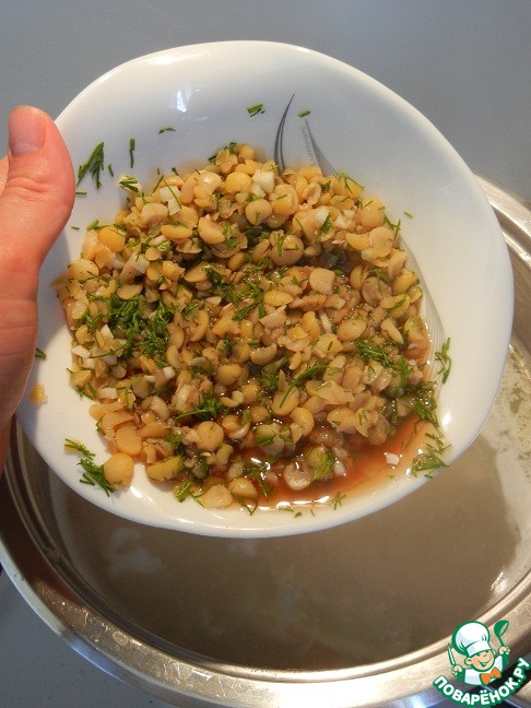 Горох промываем и замачиваем на несколько часов. Затем сливаем воду, добавив новой, варим до готовности.