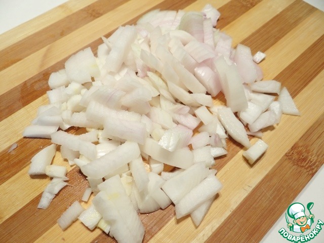 Репчатый лук чищу, мою, нарезаю на кубики.