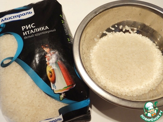 Для приготовления этого блюда нужен круглый рис. Я использовала рис Италика компании Мистраль. Рис хорошо промываю.
