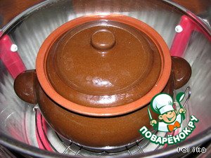 Все составляющие отправить в горшок, добавив соль и специи по вкусу.